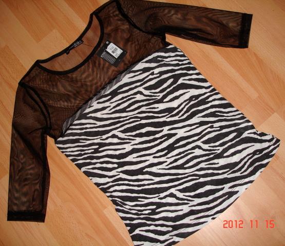 ***Visiskai nauja,su etikete,zebro rasto palaidinuke pirkta Airijoje***Virsutine dalis ir rankoves -juodas tinkliukas,del kurio ir atrodo lb sexy***Rankoves 3/4 ilgio***Dydi raso 6 (34),bet yra nemazai padidinta,nes pati nesioju 8/10 dydi,tai tinka normaliai ***Ramybes busenoj ilgis nuo petuko 59 cm.,per liemeni plotis 36 cm.,per krutine 39 cm.,bet medziagyte dar nemazai tempiasi***
