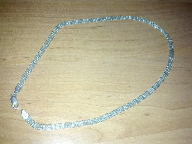 Nauja, sidabrinė grandinėlė ant kaklo, neilga. Dailaus, gražaus padarymo. svoris 5,36g. kainyte galima paderinti......