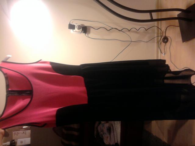 Nauja, stilinga suknele. Rozines ir juodos spalvos. Apacia persvieciama, labai grazi suknute, tinka tiek progoms tiek laisvalaikiui. Firma Reserved. Dydis S-M.