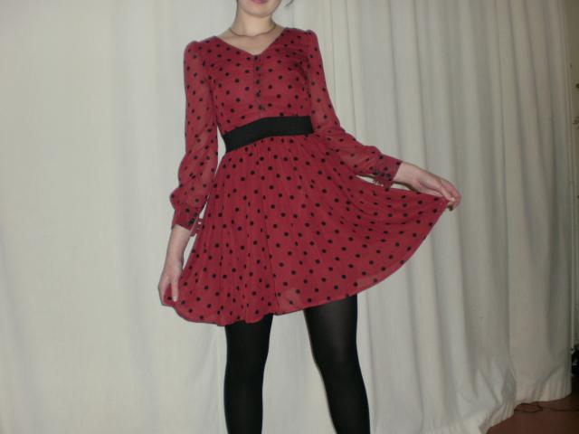 labai grazi suknele, nauja, nenesiota. as nusipirkau, bet per klaida ne ta dydi , sitas man per mazas. Siaip labai lengva suknute, svelni, miela. vysnines spalvos su juodais taskiukais.
