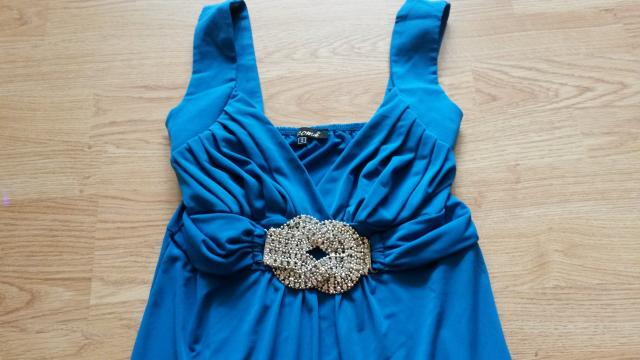 Spalva ne mėlyna, bet smaragdinė, nenešiota tik spintoj užsistovėjusi, ilgis ~79cm
