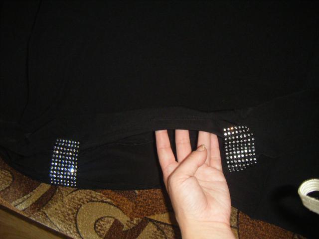 juoda su papuosimais,graziai lb.priglunda prie kuno,svelni slidi medziagyte,buvau uzsidejus karta per svente,trumpa