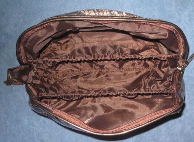 Nauja talpi kosmetinė su trim skyreliais viduje bei atskira kišenėle iš išorės. Nepralaidi vandeniui. Išmatavimai: aukštis - 19 cm., ilgis - 27 cm., dugno plotis - 16 cm.