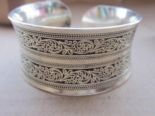 Pagaminta iš: Tibeto sidabro lydinys Matmenys: aukštis apytiksliai apie 3 cm, skersmuo atviras Turimos spalvos: sidabrinė Kaina: 29 Lt + siuntimo islaidos