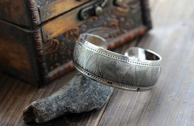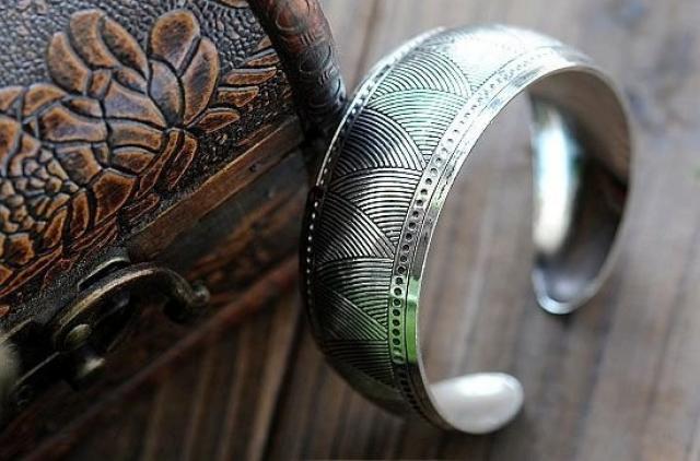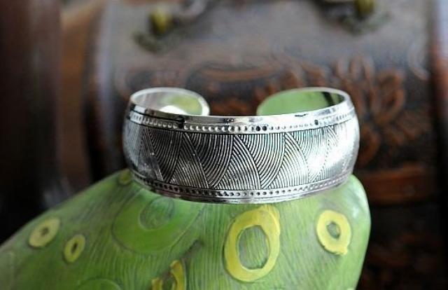 Pagaminta iš: Tibeto sidabro lydinys Matmenys: aukštis apytiksliai apie 2,5 cm, skersmuo atviras Turimos spalvos: sidabrinė Kaina:30 Lt + siuntimo islaidos