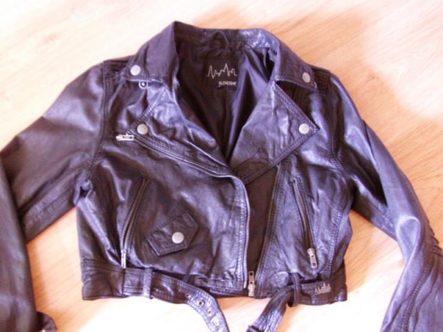 Nė kart nenešiota, bet jau be etikečių. Rankovių galai atsitraukia. Du nešiojimo būdai parodyti nuotraukose. Nėra jokių defektų, koža iš tvirtos, kokybiškos 100% odos. Tinka ir S/M ar S nešiojančiom. Spalva sodriai juoda, čia fotikas šiek tiek pakeitė į šviesesnę. Foto ant kūno lb prasta kokybė, jei reikia geresnės prašykit.