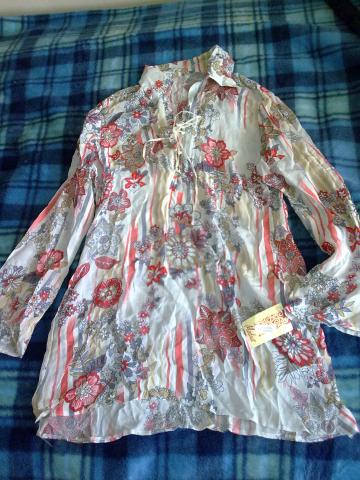 Labai grazi palaidine/tunika is Svedijos :) parsisiunciau taciau dydis netinka, raso 44, taciau manau mazesniam tiktu, jei su dirzu galima butu ir nesioti nesiojancioms 40 dydi :) labai grazi puikiai atrodo ant tympiu ar dzinsu :) vis dar su etikete :)