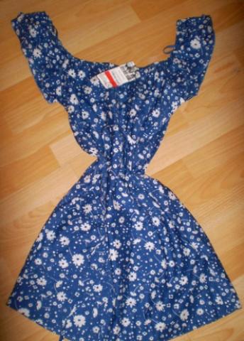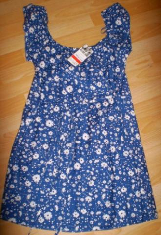 Vos vieną kartą devėta vasarinė suknelė. Dydis universalus (L-XL), reguliuojamas šniūreliais šonuose. Ilgis virš kelių. Spalva - šviesiai mėlyna, su baltomis gėlytėmis. Puikiai tiks karštam vasaros sezonui. Kaina 20lt (+siuntimas) Paskutinėje nuotraukoje spalva pasikeitusi, nes nuotrauka buvo redaguota su photoshopu. Tikra spalva 1 ir 2 nuotraukoje)