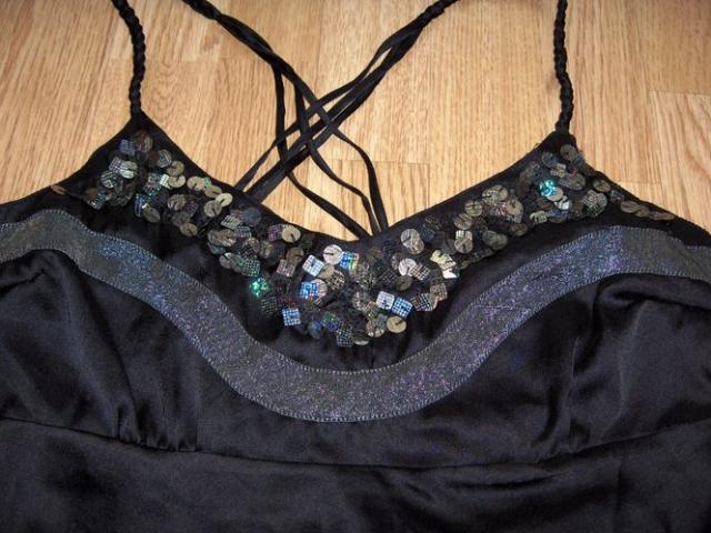 Atlasine medziagyte, labai grazus ir puosnus rubelis atveztas is uzsienio. 40 dydis kiek zinau atitinka musu L