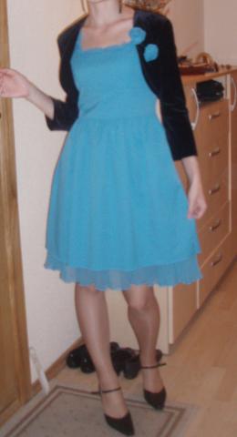Visiškai nauja, tik matuota tiffi suknelė. Parduodu 2-kart pigiau nei mokėjau.. Labai graži, lengva, patogi suknelė. Spalva -neįkyriai žydra, pirmoj nuotraukoj fotografuota su fotoaparatu kambario šviesoj (atrodo ryškesnė nei yra), o kitose su telefonu dieną. Rožytes galima persegti, kaip matosi pirmoj nuotraukoj - užsegtos ant švarkelio. Klauskit, jei kas nors dar domina, dėl kainos (derėkimės?), nuotraukų ar išmatavimų. Prieš perkant galim susitikti pasimatavimui.