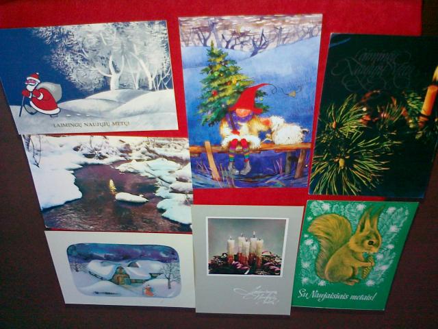 23 įvairūs naujametiniai atvirukai-lietuviški ir rusiški. Užrašyti. Galima rinktis. Vieneto kaina 0.30 eur.