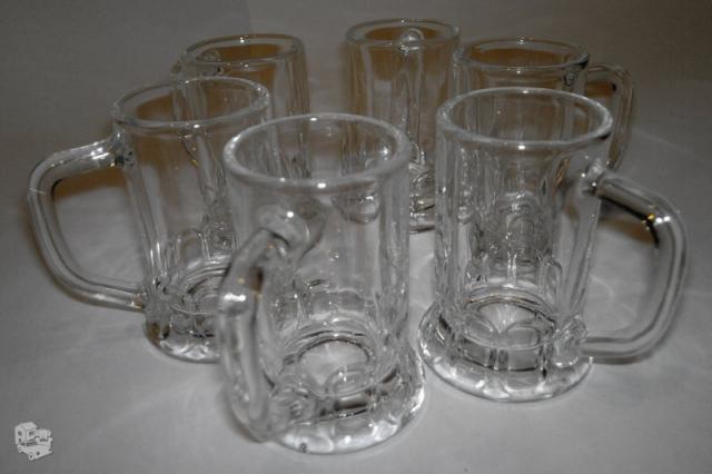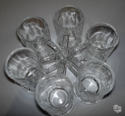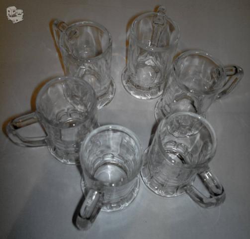 Parduodamas naujas 6 mažų stiklinių bokalų komplektas. Be logotipų ar pan. Galima išgraviruoti ir padovanoti kokia tai proga.
