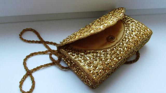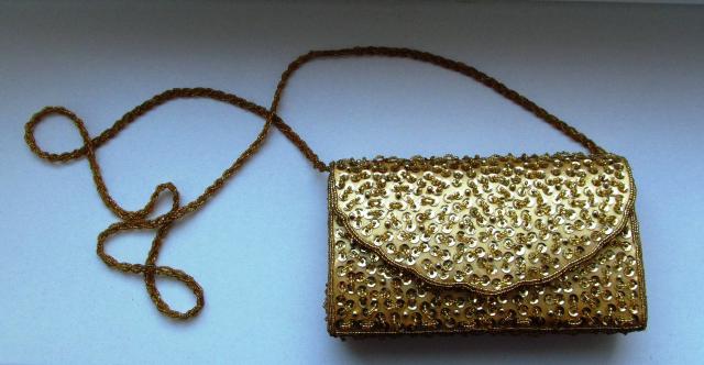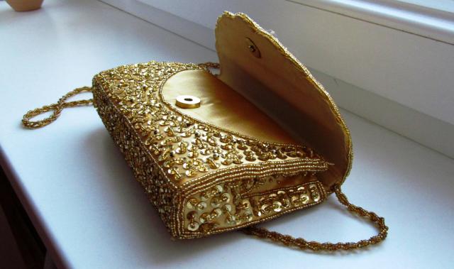 Visiškai naujas, auksinės spalvos, labai gražiai blizga, nedidelis, nei karto nenesiotas