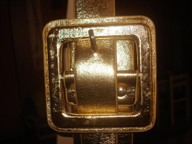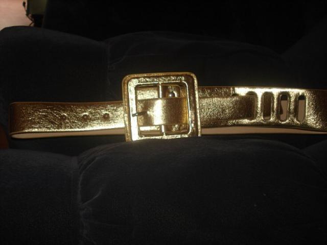 naujas aukso spalvos dirzas t visas ilgis 107cm; storiausias plotis 6cm