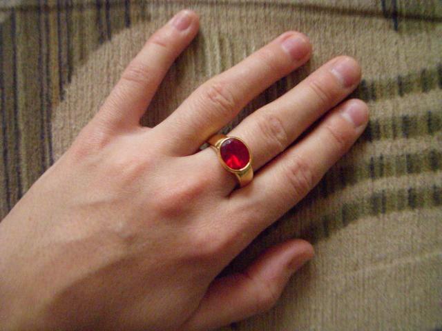 Ne karto nedevetas grazus ziedelis, su masyvia raudona akute, gaila, bet per didelis, dydis kazkur 17, pirktas is oriflame