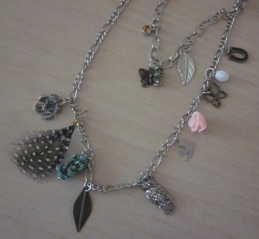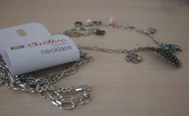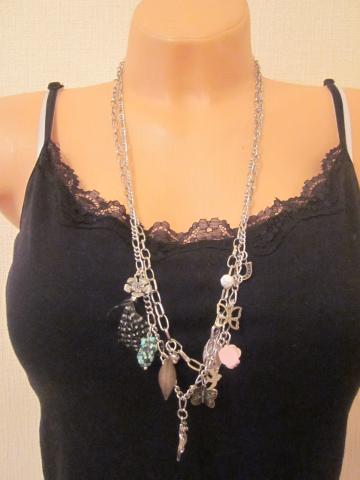 Naujas ilgas pakabukas iš "Cropp Town" parduotuvės. Iš dviejų sujungtų skirtingų grandinėlių su daug pakabukų. Mokėta 24,99lt