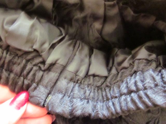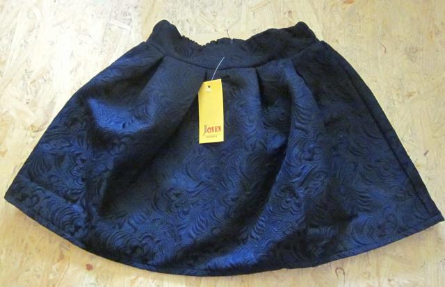 Naujas juodas raštuotas sijonas. Spalva sodriai juoda, nuotraukose atrodo kitokia dėl apšvietimo (realiausia 2-oje foto). Sijonas su pamušalu, užsisega užtrauktuku. Nugaroje yra guma. Ilgis 36 cm, juosmens apimtis ramybės būsenoje 30x2 cm, tempiasi iki 40x2 cm. Dydis nenurodytas, atitinka XXS/XS. Tiktų ir mažesniam S, žiūrėti pagal išmatavimus.