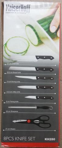Parduodu visiškai naują aukštos kokybes nerūdijančio plieno peilių rinkinį. Rinkinys susideda iš 8 dalių. Vokiška kokybė garantuoja ilgaamžiškumą. Tai gali būti puiki dovana arba nepakeičiamas virtuvės pagalbininkas