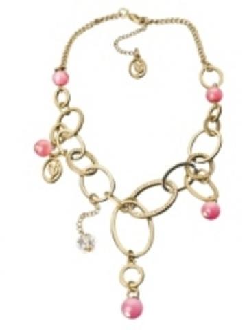 Autentiškas žymaus dizainerio kaklo papuošalas. Rafinuoti ovalūs žiedai, pakabukai iš rožinių karoliukų, "Oriflame" ir Valentino Judaškino logotipai akcentuos jūsų unikalumą ir stilių.