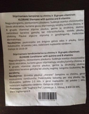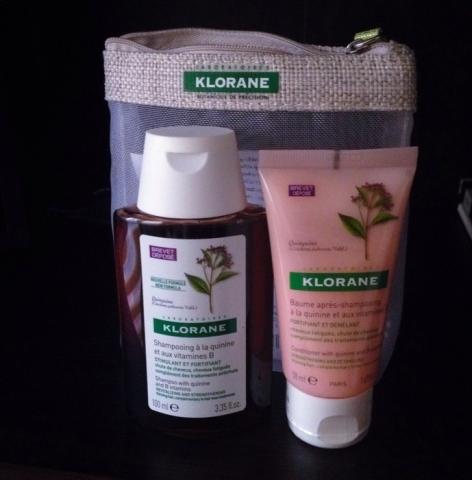 Naujas KLORANE stiprinimasis šampūnas su chininu ir B grupės vitaminais, 100ml, ir naujas kondicionierius dažytiems plaukams su granatų ekstraktu POMEGRANATE su granatú ekstraktu, 50ml + kosmetinė dovanú