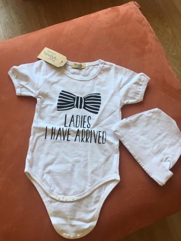 Naujas baltas komplektėlis berniukui. Šliaužtinukai 60 cm ir kepurytė.