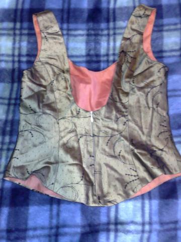 labai daili, korsetine palaidine, galima nesioti kaip liemene, taciau ji siaip yra nuo kostiumelio :) sijonuko nebeturiu tad liko tik si :) bet tinka prie betkokio sijonuko tarkim kad ir ilgo juodo, gaunasi puosnu :) galima net vakarui :) siulykit kaina ;)