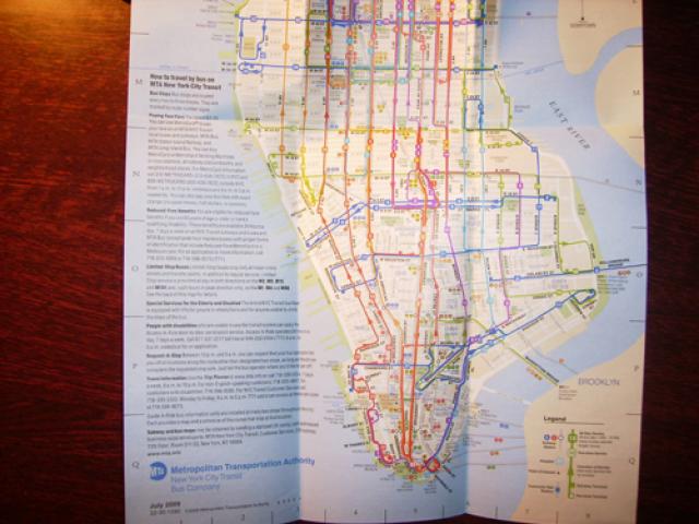 Naujas Mabnhattano autobusu zemelapis, tuo paciu kazkiekk ir miesto , nuotraukoje matosi tik dalis, zemelapis pilnas
