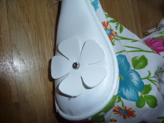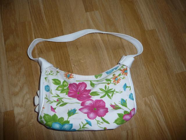 mažas, nenešiotas, vasarai tinkantis rankinukas su gėlytėmis šonuose.