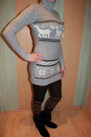 Nauji labai šilti megztiniai su skandinaviškais motyvais. Puikiai tiks ateinančiai žiemai. Spalvos dvi: šviesiai pilka ir tamsiai pilka. Išmatavimai: ilgis 77 cm, klubai 40 cm (viena pusė), liemuo 36 cm, krūtinė 40 cm, rankovės ilgis nuo peties 63 cm.