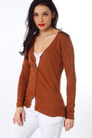 Naujas rudos spalvos megztukas su antpečiais. Dydis tiktų S/M.