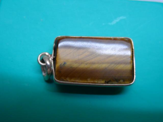 naujas, nenesiotas pakabukas: akmuo tigro akis ir AG 925