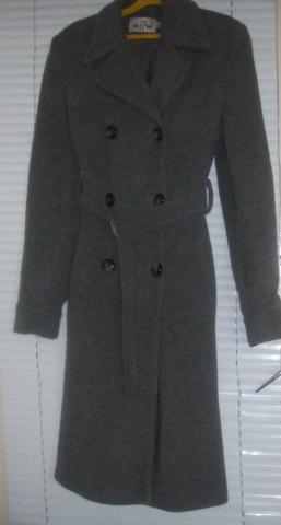 Vilnonis,šiltas,ilgas,šviesiai pilkas paltas.Dydis S-M