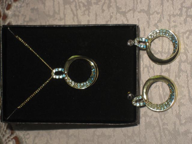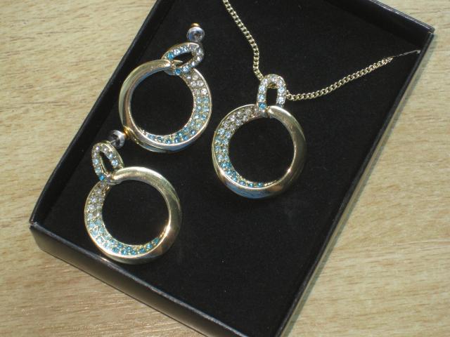 naujas papuosalu rinkinys,aukso spalvos auksarai ir kaklo pakabutis su grandinele