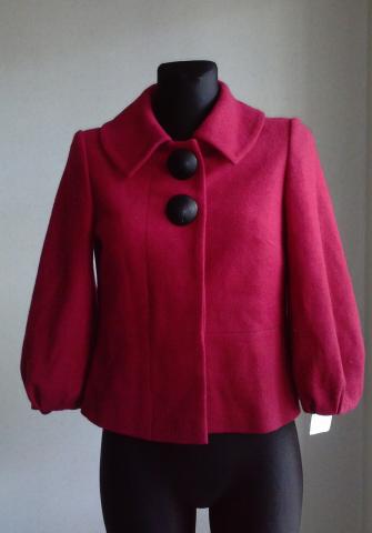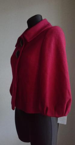 Naujas, dailus vyšniavos spalvos puspaltis. Viduje yra pamušalas. Yra etiketė. Dydis 40 Ilgis 49cm Rankovės ilgis 44cm Krūtinės apimtis 45cm Pečiai 35cm Sudėtis 74% polisteris 26% vilna