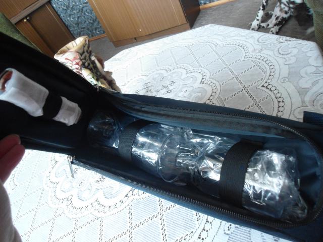 Naujas, su tauremis ir atidarytuvu, vynui ar kitam buteliui. Atsaldyta buteli dedate i skyriu buteliui ir visa diena jis saltas:)