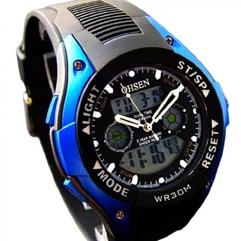 Naujas, kokybiskas laikrodis Ohsen. Gamyba.Japonija. Kokybiski.Tinka zvejams,sportininkams. Mechanizmas:tikslus japonu kvarcas. Grudinto mineraliniu kristalu, atsparus braizymui. Nerudijancio plieno korpusas. Analoginis ir skaitmeninis dvieju rodiklis Zerintis fonas, su baltais skaitmenimis. Skystuju kristalu skaitmeninis Zifferbaltt. Juodos gumos apyranke. Apyrankes ilgis: 23 cm, reguliuojamas Dvieju spalvu.Salotinis,melynas. tel.864255588.
