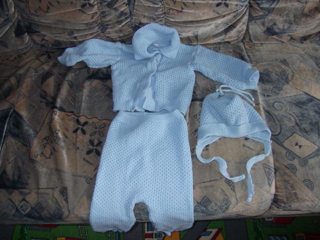 nei karto nedėvėtas triju daliu kompektukas: kelnytės, megztukas, kepurytė ~12 mėn