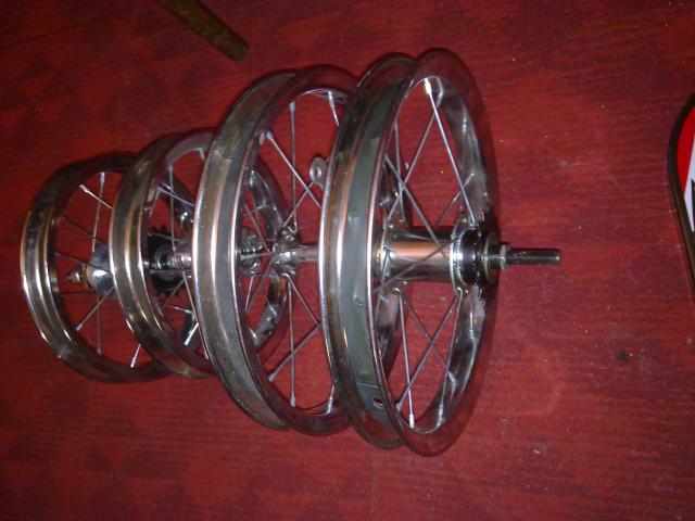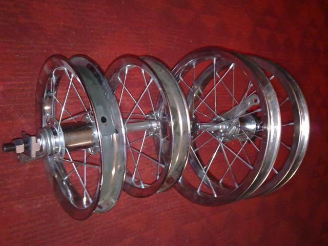 Nauji vaikišku dviratuku ratlankiai su stipinais, keičiu arba parduodu tik porom (komplekta, priekinis ir galinis) kaina poros - 40lt. 867292877