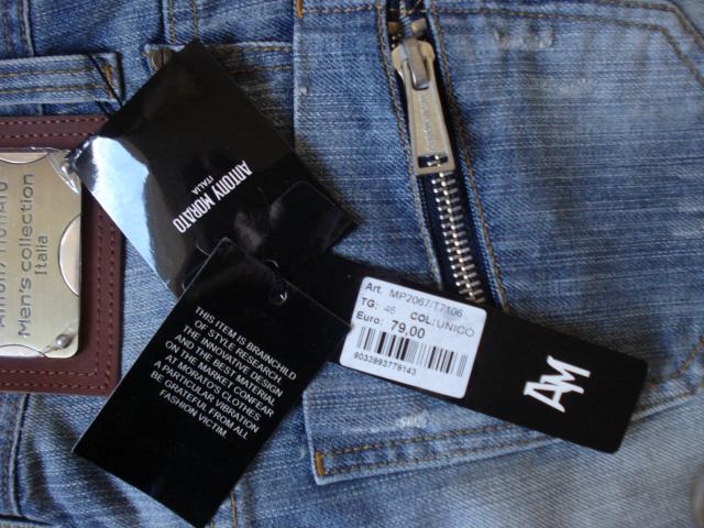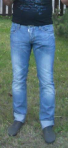 Visiškai nauji vyriški džinsai. Nešiojami užlenkti, tikrai labai gražiai atrodo, nėra platus, į galą lygus. Truputi pablukinti bet nedaug, gale ant kišenių užtrauktukai. Jai ką sudomins rašykite, galėsiu atsiusti daugiau foto. Mano draugas juos turi tai patenkintas nešioja. Kainavę 79 eurai. Yra likę dydžiai: 52/38 48/34 46/32 Tik geriau rašykite man el. paštu: agnyte21@live.com arba skambinkite telefonu 867413799, nes čia retai būnu prisijungus.