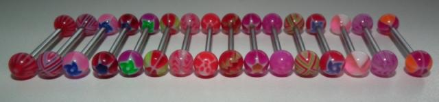 Parduodu naujus įvairių spalvų,raštų,šviečiančius neono šviesoje auskarus į liežuvį.Metaliuko ilgis 16mm. Auskarai akriliniai,negadinantys dantų.Perkant daugiau nei 4 siuntimą užmoku aš