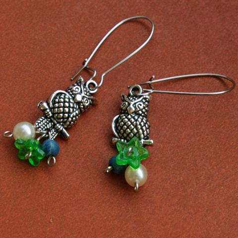 Nauji auskarai "Pelėdos" (su žaliom gėlytėm)