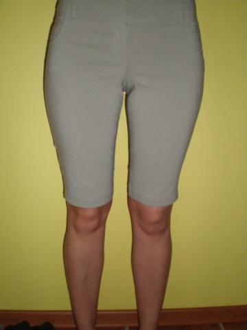 Dydis S/M. Visiškai nauji bridžiukai, gerai žinomos firmos New look. Spalva šviesiai haki, užsisega užtrauktuku ir dviem kabliukais, labai gražiai aptempia. Dydis S/M-M. Išmatavimai: juosmuo ~41,5cm, priekyje nuo viršaus iki klyno ~21,5cm, aplink šlaunies vidurį ~22,5cm, klešnės ilgi nuo klyno ~30,5cm, klubai ~46*2cm (nuotraukoje moters klubai 98cm). Medžiaga su elastanu, todėl prisitaikys prie Jūsų apimčių. NEMAINAU.