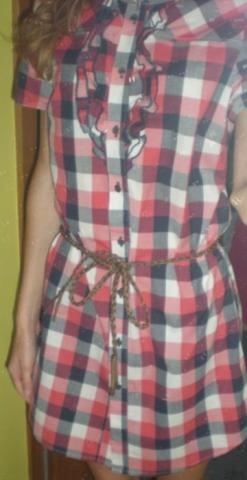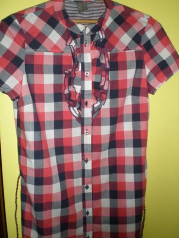 Nauji, nė karto nedėvėti marškinukai, ilgi, su "kvarbatkiukais" pakaklėje. Galima per juosmenį susirišti dirželį, yra kilputės jam. Parduodama su dirželiu. Ilgis nuo pažasties - 58cm, ilgis nuo apykaklės nugaroje - 89cm. NEMAINAU.