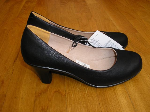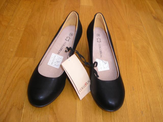 Nauji juodi bateliai, viduje oda. Vitpadis 24cm. Kulniuko aukstis apie 4cm.