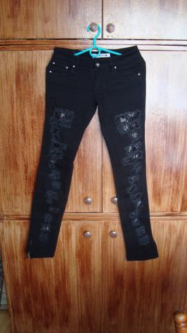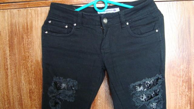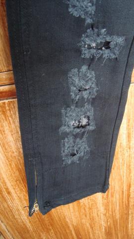 nauji,tampraus dzinso,klesniu apacia siaura su uztrauktukais,saikingai paplesyti ir is apacios matosi gipiuras,ilgis-102cm,juosmens apimtis-74cm,klubu apimtis-90cm