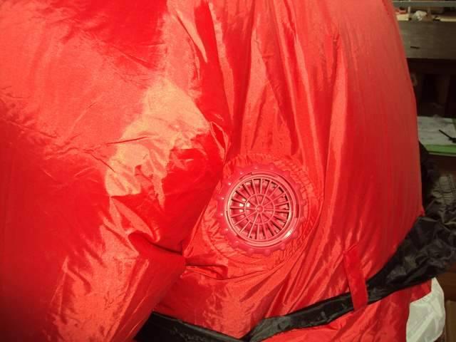 Rūbai užsidėjus užsitraukia, apsitempia ties pėdomis, plaštakomis ir kaklu; viduje turi ventiliatoriuką su baterijomis kur rūbai prisipučia. Kepurė nepripučiama.