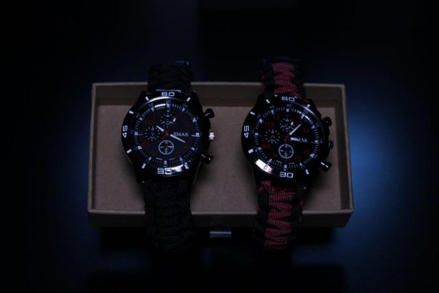 Paracord Laikrodis Gamtoje! Paracord Laikrodis skirtas iškilaujantiems ar gamtoje mėgstanties keliauti žmonėms. Skirtos visiems, vyrams, moterims ir vaikams! Apyrankę sudaro: Laikrodis, titnagas bei kompasas!! Spalvos: juoda, juoda su bordine. Kaina: po 12,99 eurų.