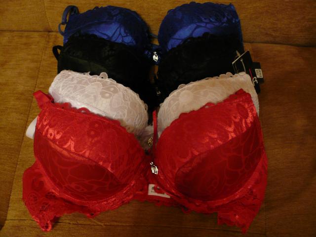 1 foto: Raudoni: 34/75B; 36/80B; Juodi: 36/80B; Balti: 34/75B; 36/80B; Melini: 34/75B; 36/80B; 2 foto: likes Juodas: 38/85