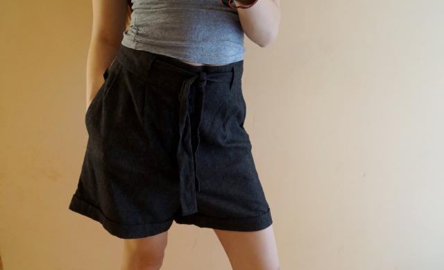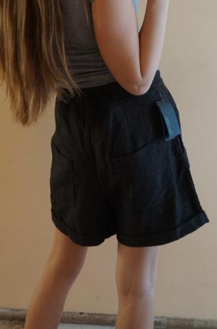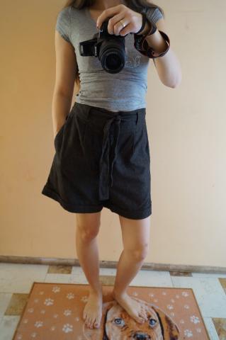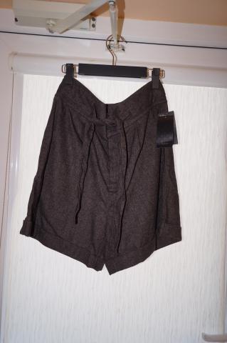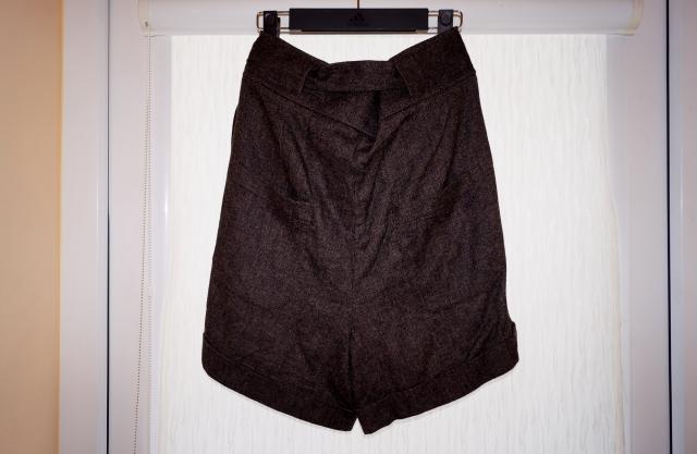 Nuostabūs šokoladiniai nauji Mango šortai paaukštintu liemeniu, puikiai tiks rudeniui, ar nežvarbiai žiemos dienai. Sudėtyje yra vilnos, tad jie šildys, nors pati medžiagos tekstūra nėra stora. Itin malonūs prie kūno. Nugaroje yra kišenės. Išmatavimai: 44 cm liemuo; 54 cm klubai, 47 cm visas ilgis. 52% polisteris, 37% vilna, 10% poliamidas, 1% etastanas.
