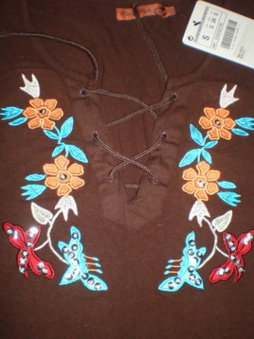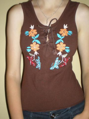 Siuvinėta karoliukais ir gelėmis, susagstoma virvute. S dydis.